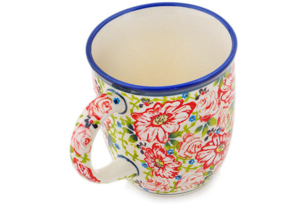 Polish Pottery 12 oz Mug Blue And Red Poppies UNIKAT