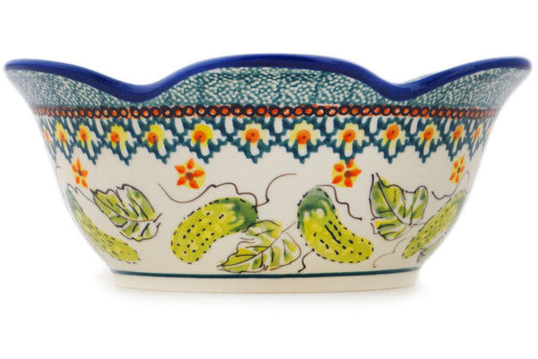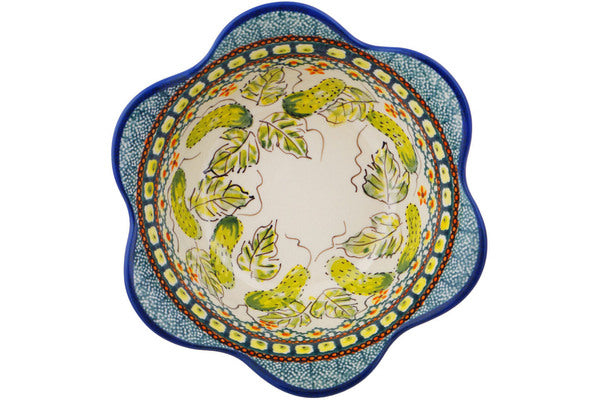 Polish Pottery 8" Scalloped Fluted Bowl Cucumber Patch
