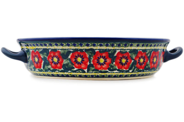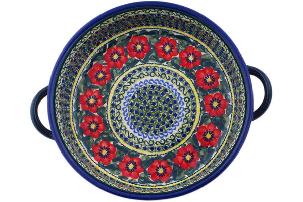 Polish Pottery 13" Round Baker with Handles Poppies All Around UNIKAT