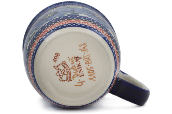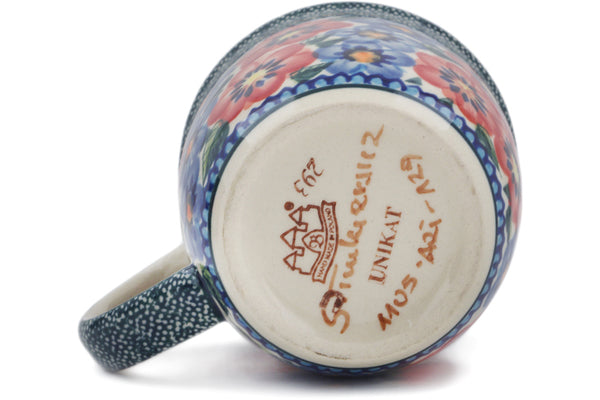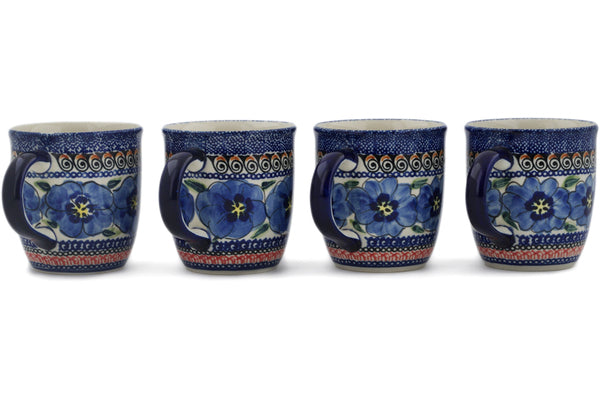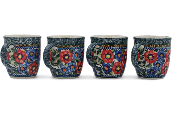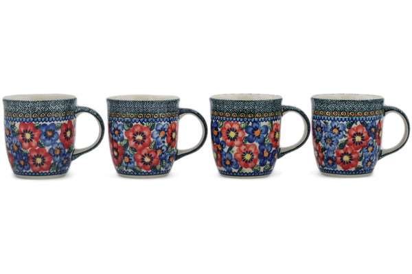 Polish Pottery Set of Four 12oz Mugs Blue And Red Poppies UNIKAT