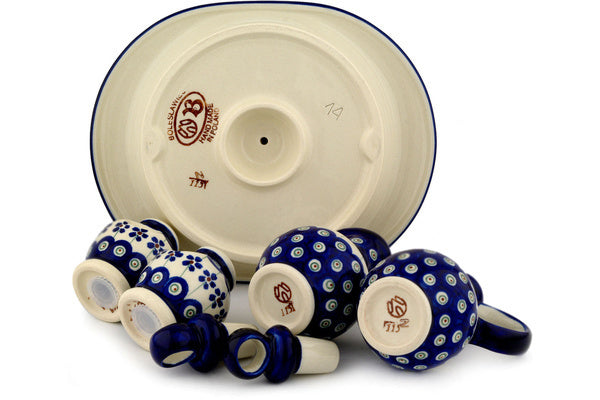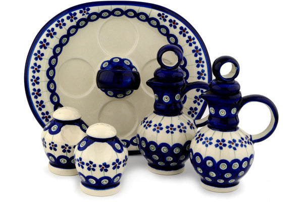 This Polish pottery Seasoning Set is made by Zaklady Ceramiczne workshop in Boleslawiec, Poland. Manufacturer item number H5490C. It is 6½" high and measures 9" by 7¼". The weight of...